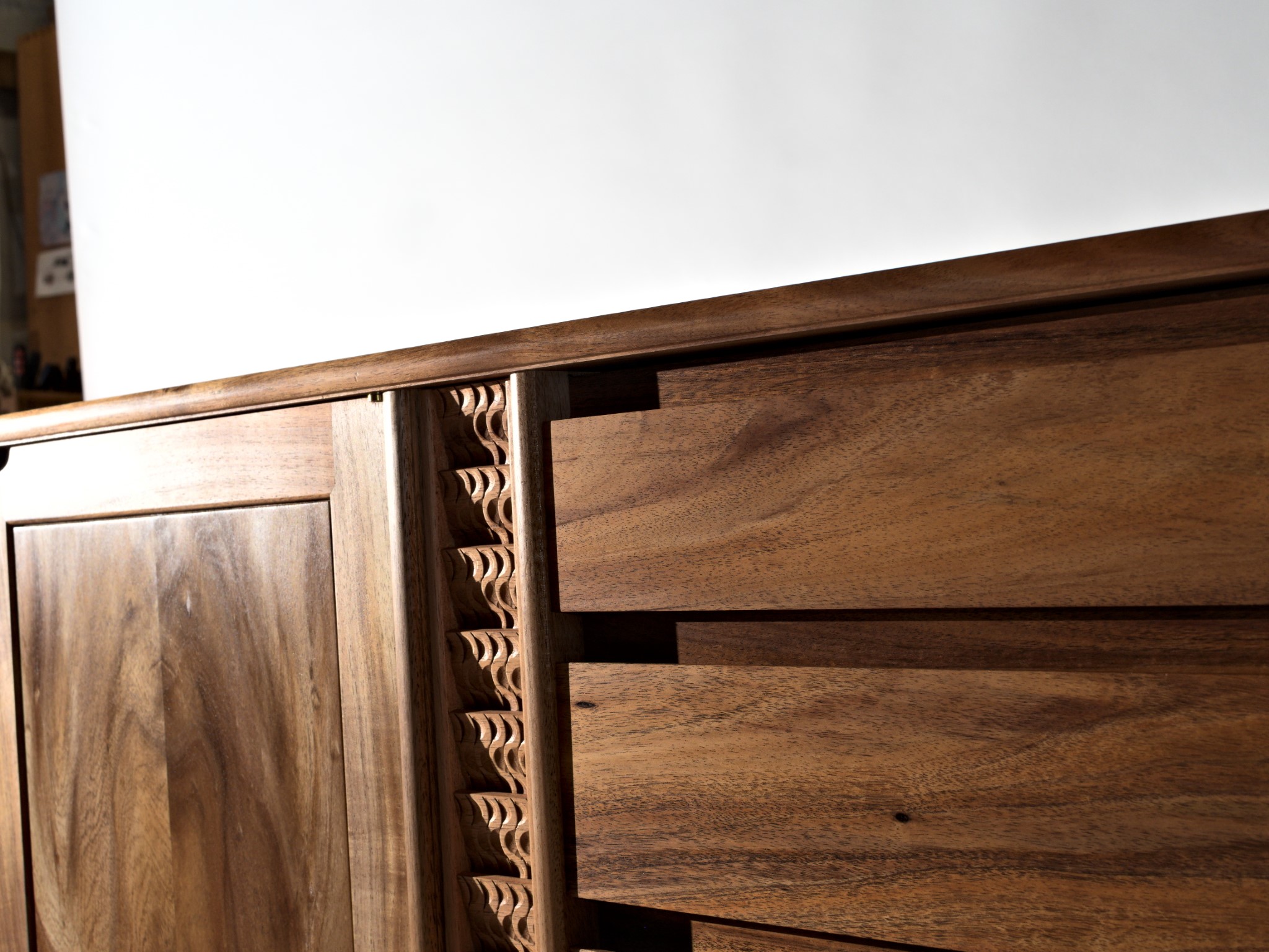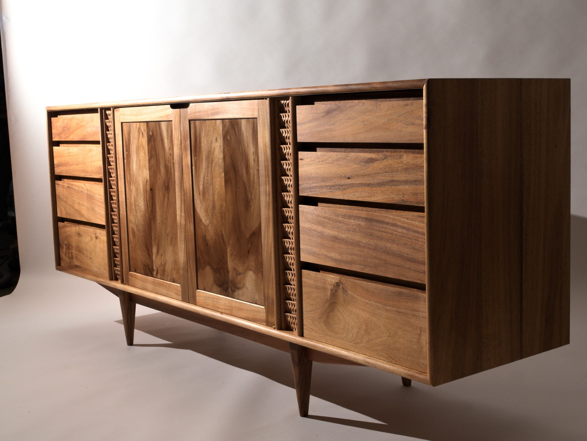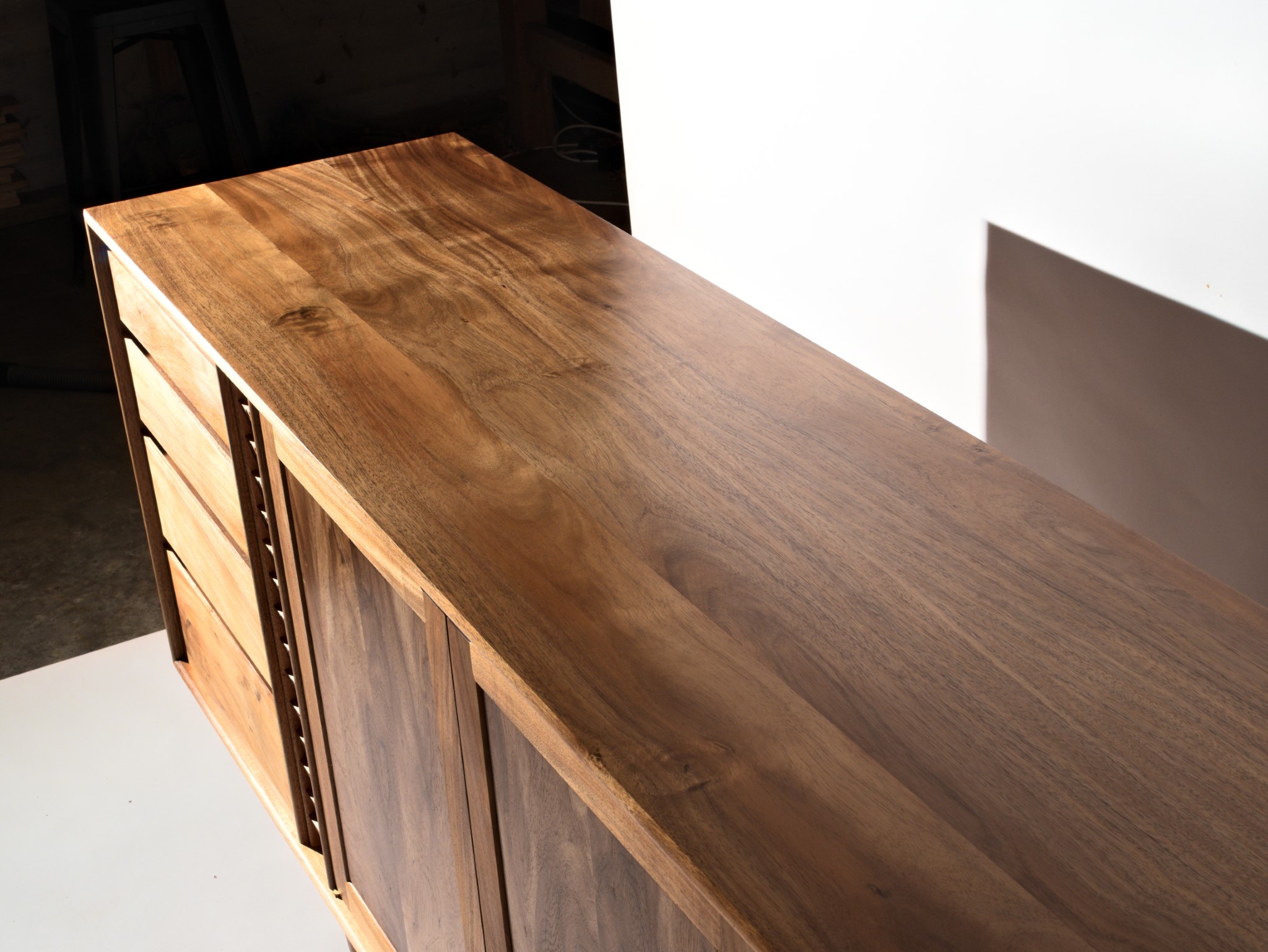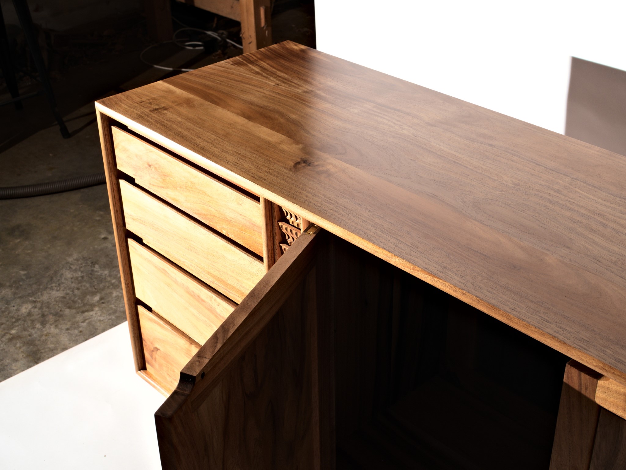 The entire piece is built from solid timber, sourced locally, right here in Northland. This cabinet was designed to house my client’s earring collection, with the top drawers lined in the finest pig suede.