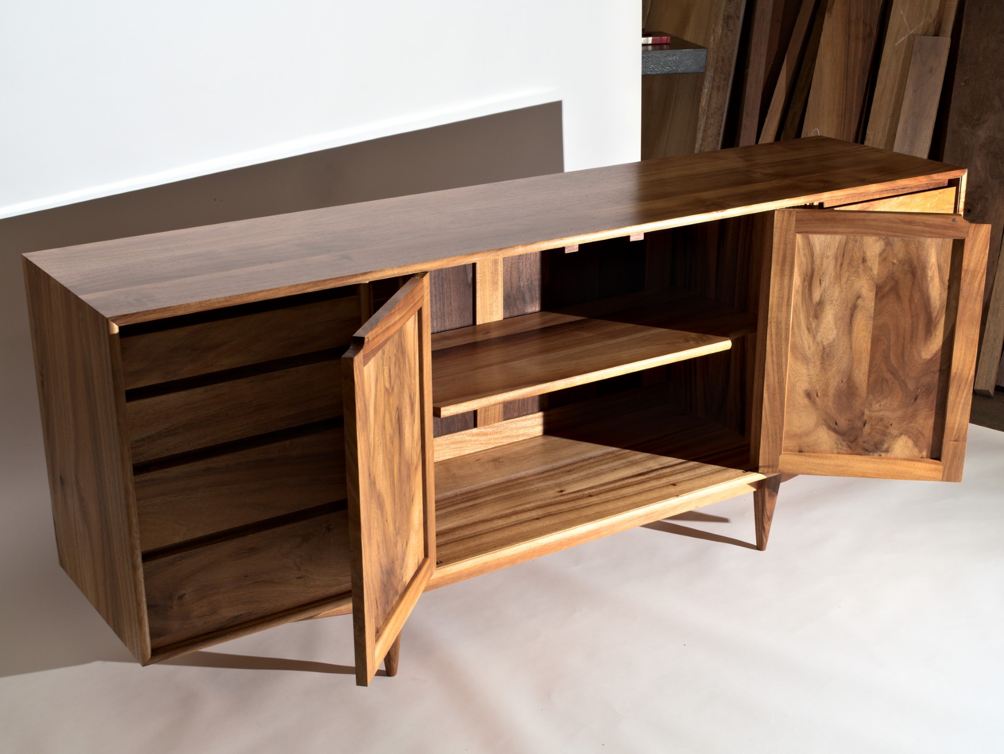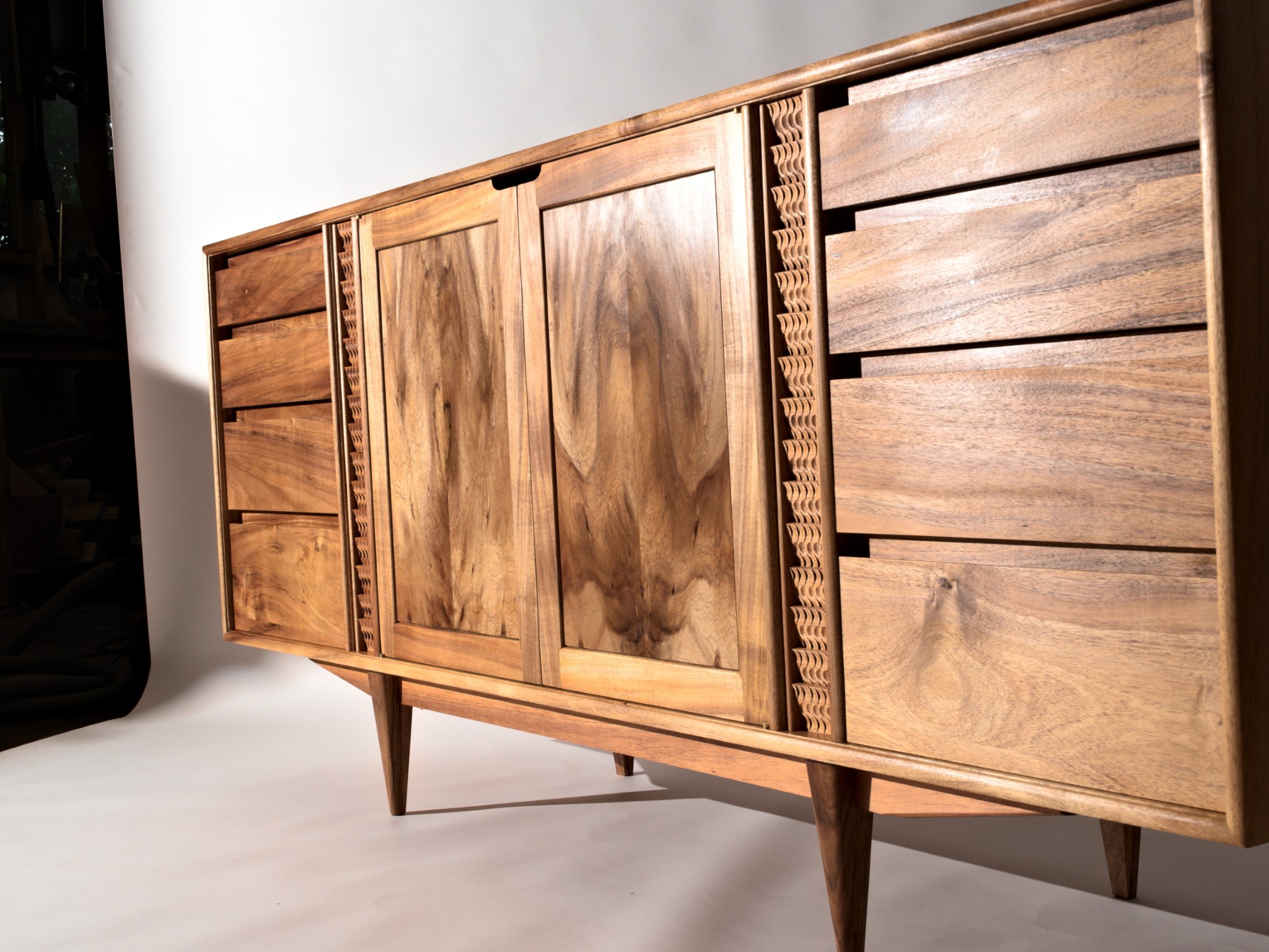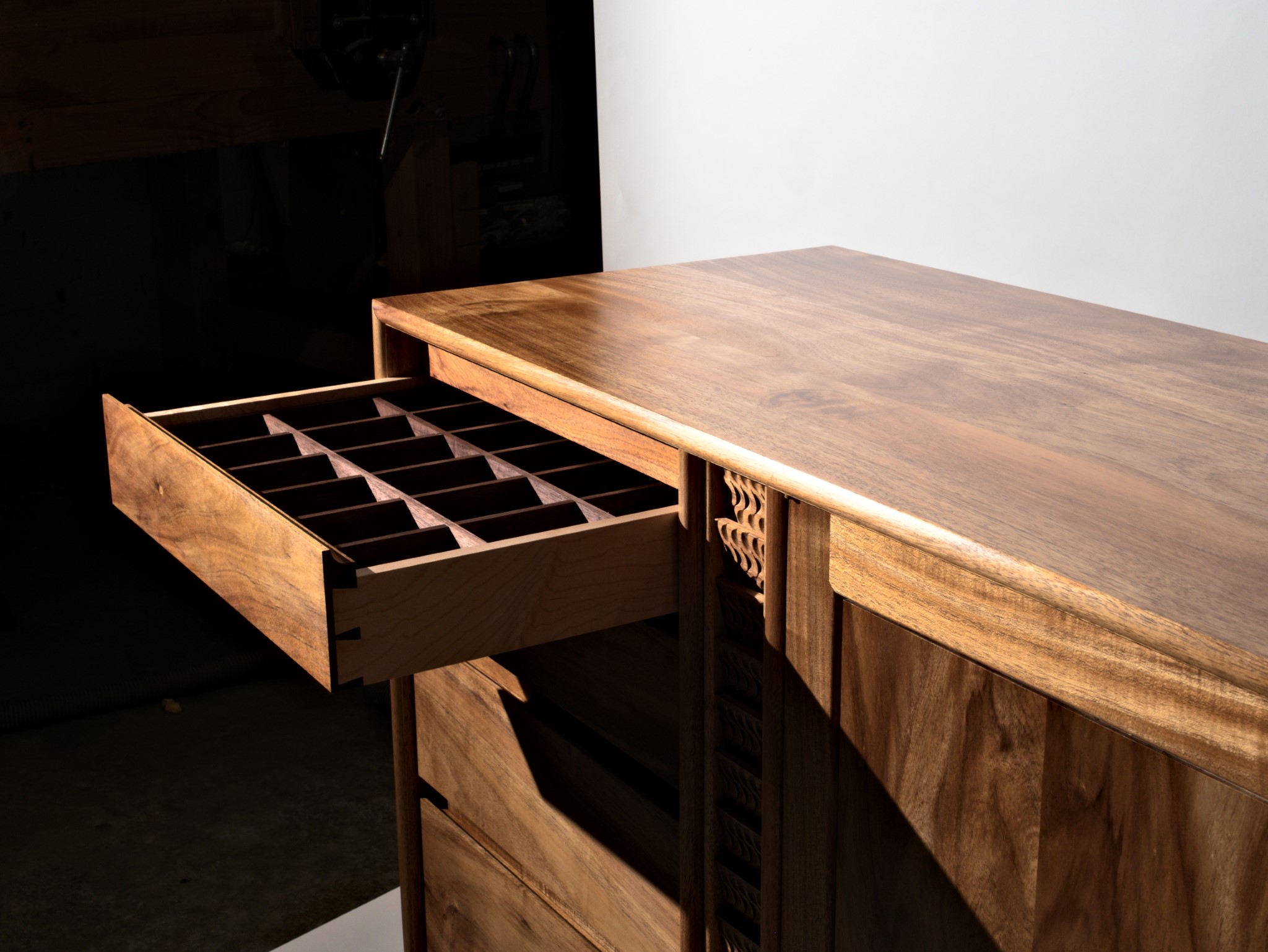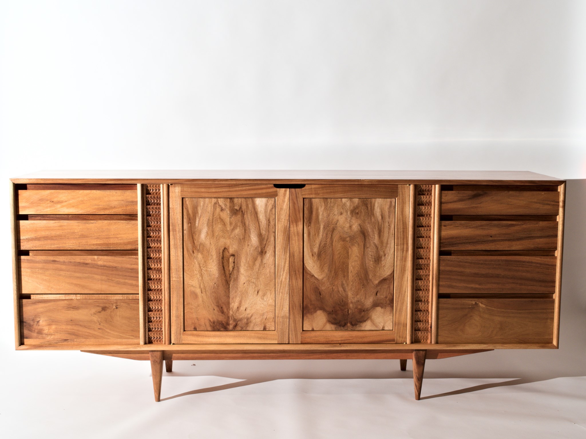 The entire piece is built from solid timber, sourced locally, right here in Northland. This cabinet was designed to house my client’s earring collection, with the top drawers lined in the finest pig suede.