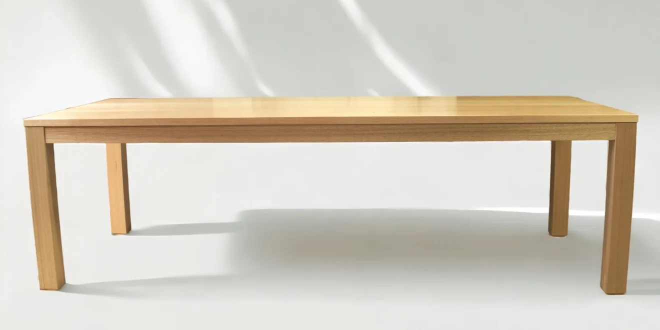 The focus is on the clean, uncluttered lines of the simple design, bringing out the unadorned beauty of solid timber furniture.